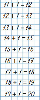 1. Прибавляй по одному, начиная с числа одиннадцать, до числа двадцать.