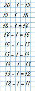 Повтори числа от 11 до 20 и помни: когда мы вычитаем 1, получается ПРЕДЫДУЩЕЕ ЧИСЛО.