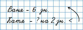 5.   У Вани 6 значков, а у Кати на 2 значка меньше.