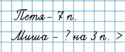 1) Петя сделал из шишек 7 поделок, а Миша — на 3 больше.