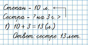 7. Степану 10 лет. Сколько лет его сестре, если она на 3 старше?