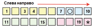 2. Которым по счёту будет в верхнем ряду квадрат с кружком, если считать слева направо? справа налево?