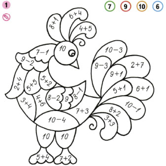 Примеры с ответом 10 раскрась жёлтым цветом.
