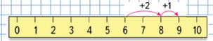 На числовом отрезке выделены розовым цветом ответы при прибавлении к 1 по 3.
