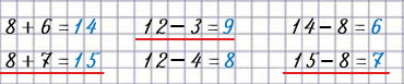 | 8 + 6 = 8 + 2 + 4 = 14 | 12 - 3 = 12 - 2 - 1 = 9 | 14 - 8 = 14 - 4 - 4 = 6 |