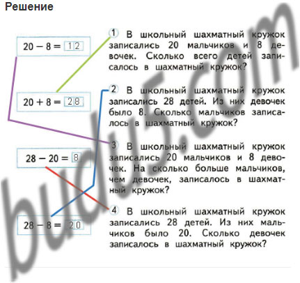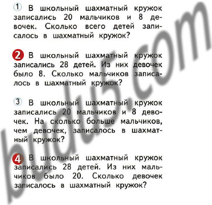 2. В школьный шахматный кружок записались 28 детей. Из них девочек было 8. Сколько мальчиков записалось в шахматный кружок?