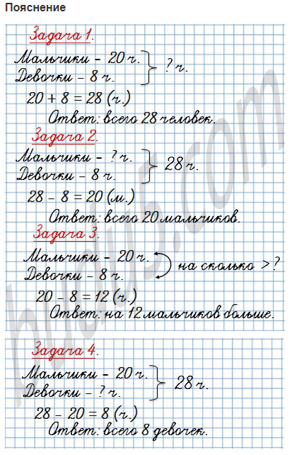 3. В школьный шахматный кружок записались 20 мальчиков и 8 девочек. На сколько больше мальчиков, чем девочек, записалось в шахматный кружок?
