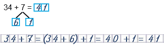 34 + 7 = 34 + (6 + 1) = (34 + 6) + 1 = 41