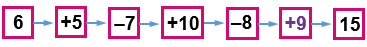 Внимательно рассмотри цепочку и установи, какое число и с каким знаком нужно вставить.