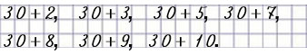 30 + 2 = 32, 30 + 3 = 33, 30 + 5 = 35,