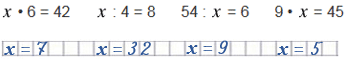 2) Составь и запиши 2 разных уравнения с неизвестным множителем так, чтобы значение неизвестного было равно 7.