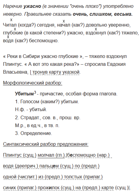 Прочитайте, стараясь передать особенности произнесения реплик участников диалога. Какое наречие ученик употребил неоправданно с точки зрения норм литературного языка? Выпишите словосочетания с наречиями, обозначая в них главное слово. Запишите две последние реплики в виде предложений с прямой речью, обозначив в них деепричастные обороты как члены предложения.