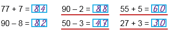 Сначала, не проводя вычислений, подчеркни те выражения, значения которых, по твоей прикид­ке, равны 30, 47, 60, 88, затем проверь вычис­лением.