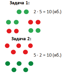 В задаче 1 по 2 яблока взяли 5 раз.