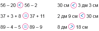 56 - 20 < 56 - 2 30 см < 3 дм 3 см