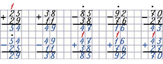 Складываю десятки: 2 + 2 = 4 и ещё 1 десяток, который запоминали, получается 5.