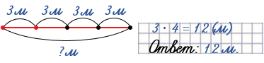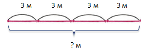 На одно платье расходуют 3 м ткани. Сколько метров ткани потребуется на 4 таких платья?