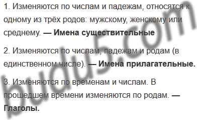 1. Изменяются по числам и падежам, относятся к одному из трёх родов: мужскому, женскому или среднему.