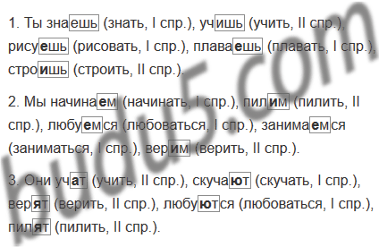 Образец. Ты знаешь (знать, I спр.), учишь (учить, II спр.), рису..шь (...), плава..шь (...), стро..шь (...).