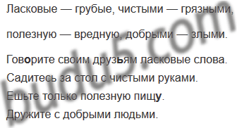 | Говорите своим друз..ям ласковые слова. Садитесь за стол с чистыми руками. Ешьте только полезную пищ.. . Дружите с добрыми людьми. |