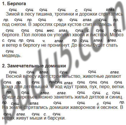 Запишите получившиеся предложения. Над каждым словом укажите, к какой части речи оно относится.