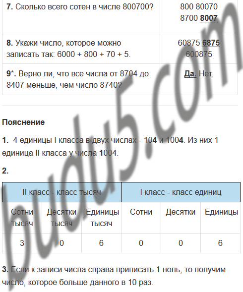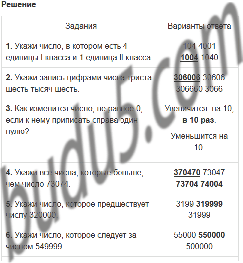 | 1. Укажи число, в котором есть 4 единицы I класса и 1 единица II класса. | 104 4001 1004 1040 |