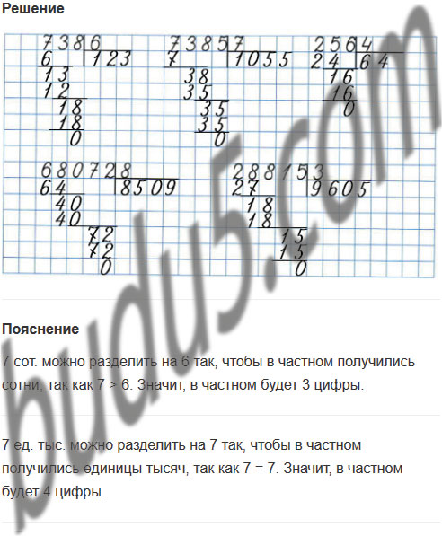 Повтори алгоритм письменного деления трёхзначных и многозначных чисел.