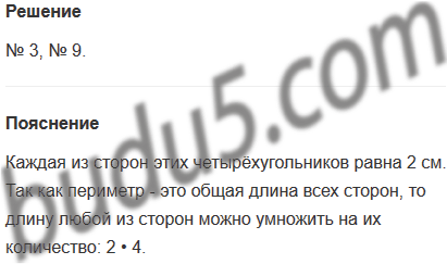 29. Рассмотри чертёж на странице 59. Запиши номера тех четырёхугольников, периметр которых вычисляется так: 2 • 4.