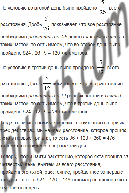 , а в четвёртый оставшееся расстояние. Сколько километров прошла яхта в четвертый день?