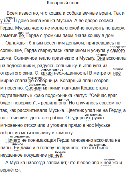 4) мораль (поучительный вывод) из описанной сценки. Постарайтесь употребить в рассказе местоимения (она, в этом рассказе, какая коварная, у неё и др.).