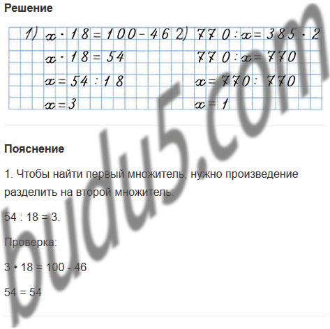 1) Произведение неизвестного числа и числа 18 равно разности чисел 100 и 46.