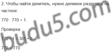 2) Частное числа 770 и неизвестного числа равно произведению чисел 385 и 2.