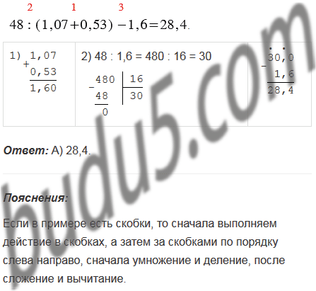 Чему равно значение выражения 48 : (1,07 + 0,53) - 1,6?
