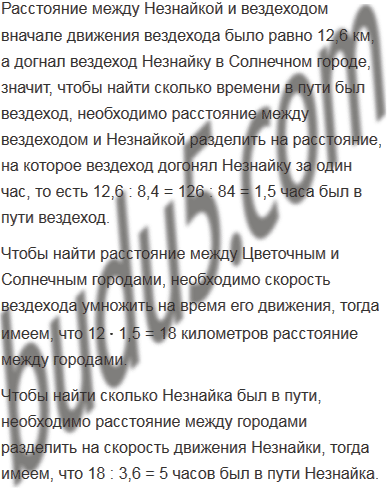 В 9 ч утра Незнайка вышел из Цветочного города в Солнечный со скоростью 3,6 км/ч. В 12 ч 30 мин следом за ним на вездеходе собственной конструкции выехали Винтик и Шпунтик. Вездеход двигался со скоростью 12 км/ч и прибыл в Солнечный город одновременно с Незнайкой. Сколько времени шёл Незнайка? Каково расстояние между Цветочным и Солнечным городами?