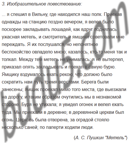 Выпишите из художественного произведения (например, из повести А. С. Пушкина «Метель») типовые фрагменты со значением описания состояния окружающей среды, состояния человека; изобразительное повествование.
