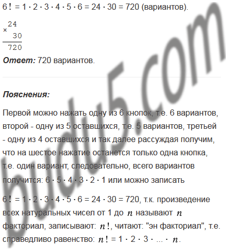 Кодовый замок имеет шесть кнопок. Чтобы его открыть, нужно нажать кнопки в определенной последовательности (набрать код). Сколько существует вариантов кода для этого замка?