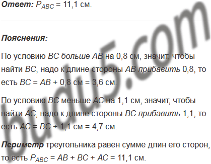 Найдите периметр треугольника АВС, если АВ = 2,8 см, ВС больше АВ на 0,8 см, но меньше АС на 1,1 см.