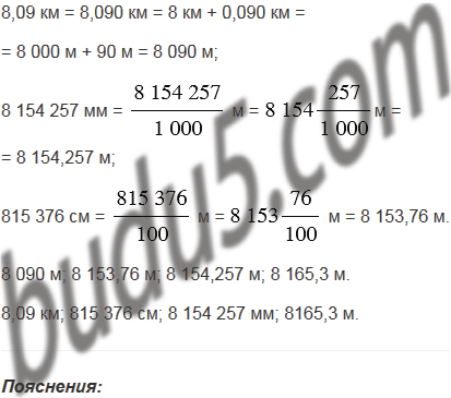 Расставьте в порядке возрастания величины: 8,09 км; 8165,3 м; 8 154 257 мм; 815 376 см.
