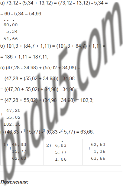 г) (46,83 + 15,77) - (6,83 - 5,77).