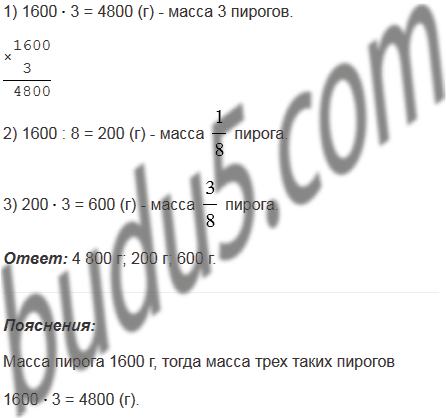Масса пирога 1600 г. Какова масса 3 таких пирогов? пирога? пирога?