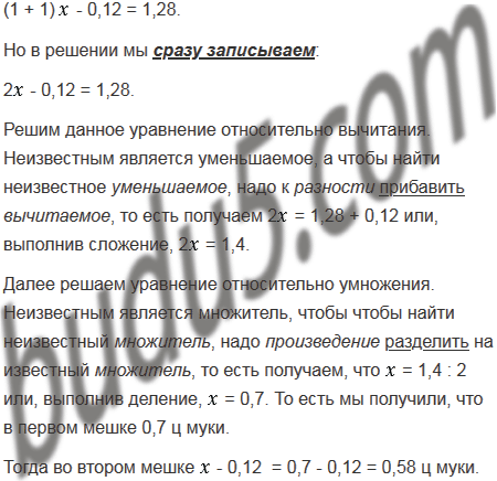 В двух мешках 1,28 ц муки. В первом мешке на 0,12 ц муки больше, чем во втором. Сколько центнеров муки в каждом мешке?