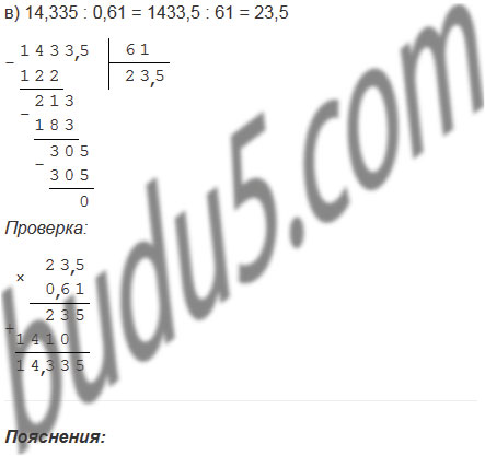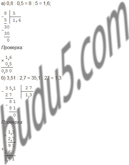 а) 0,8 : 0,5; б) 3,51 : 2,7; в) 14,335 : 0,61.