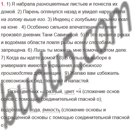 1) Я набрала листьев разноцветных и понесла их домой. 2) Парень оглянулся назад и увидел на голову выше его нарушителя. 3) Индеец ехал на коне с голубыми перьями. 4) Особенно на меня сильное впечатление произвёл дневник Тани Савичевой. 5) В это время в реках и водоёмах области ловля рыбы запрещена всеми способами. 6) Ты лишь можешь мне помочь в этом деле. 7) Вы когда идёте домой? 8) В большом выборе в универмаге имеются украшения для женщин зарубежного производства. 9) Желаю вам всевозможных бед, печалей и напастей избежать.