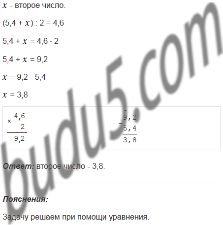 Среднее арифметическое двух чисел 4,6. Одно число 5,4. Найдите другое число.