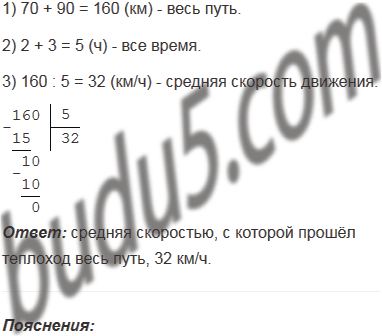 Теплоход прошёл 70 км по реке за 2 ч и 90 км по озеру за 3 ч. С какой средней скоростью прошёл теплоход весь путь?