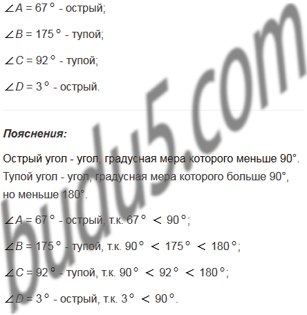 Какие из углов острые и какие тупые, если А = 670; В = 1750; С = 920; D = 30.