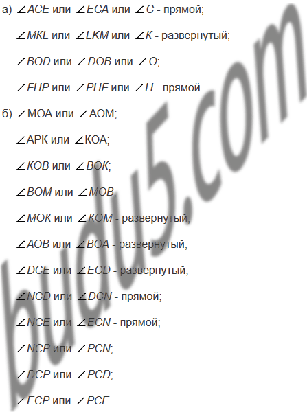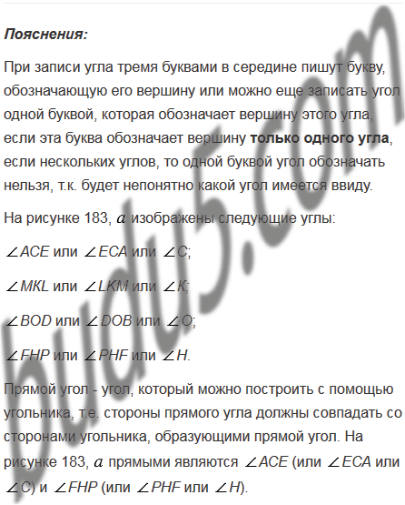 Назовите каждый из углов, изображенных на рисунке 183, а и б. Найдите среди этих углов прямые и развернутые углы.