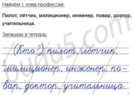 Найди в двух отрывках из стихотворения С. Михалкова названия профессий. На какой вопрос отвечают эти слова? Запиши слова и вопрос.
