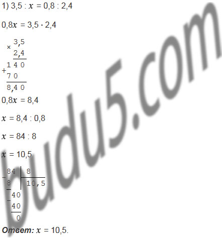 1) 3,5 : = 0,8 : 2,4; 2) 6,8 : 2,5 = : 1,5.