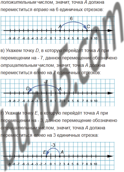 в) точку D, в которую перейдёт точка А при перемещении на - 7;